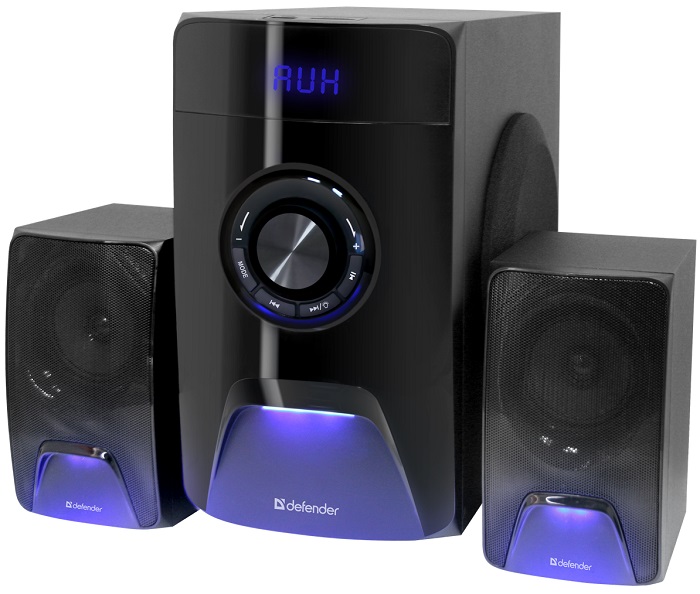 Стильная система 2.1 в деревянном корпусе с лакированной передней панелью сабвуфера