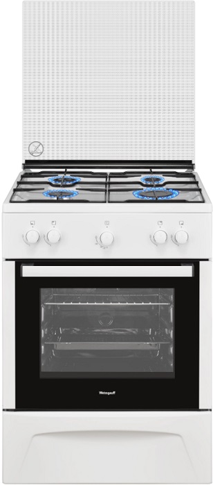 Газовая плита Weissgauff WGS G1G02 W - это прибор для приготовления пищи за счет образования тепла от сгорания газа в газовых горелках. Горелки расположены на рабочем столе плиты и в духовке. Управление работой газовых горелок осуществляется кранами. Для зажигания горелок используется интегрированный розжиг. Для горения газа необходим воздух помещения. Устройство для отвода продуктов сгорания газа не предусмотрено.