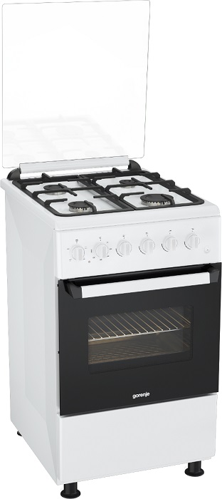Технология автоматического поджига активируется нажатием отдельной кнопки и упрощает повседневный процесс приготовления, а система газ-контроля повышает безопасность в эксплуатации техники. Выдвижной ящик позволяет с удобством хранить посуду. В комплекте с плитой Gorenje KNF5120W поставляются 2 решетки, специальная решетка для турки, глубокий противень.