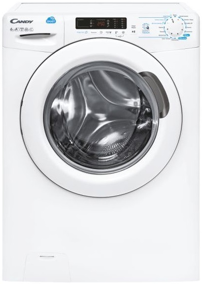 Стиральная машина Candy Smart CSS34 1062D1-07 рассчитана на очистку до 6 кг белья за раз. Она вместительная и \u00abумная\u00bb, поэтому станет незаменимой помощницей в любом доме. Управление машиной осуществляется за счет сенсорной панели, дисплея и поворотных механизмов. Модель относится к классу энергоэффективности А+ и расходует не более 49 л воды за цикл. Машина обладает 16 режимами работы, включая быстрые (14, 30 и 44 мин стирки) и экологичный. Еще одно достоинство модели – возможность отложить стирку на продолжительность до 24 ч.