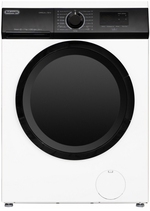 Стиральная машина DeLonghi CAMILLA L 724 V; 7 кг; 15 программ; кнопки,поворотный механизм,дисплей; 60x85x40; белый/черный
