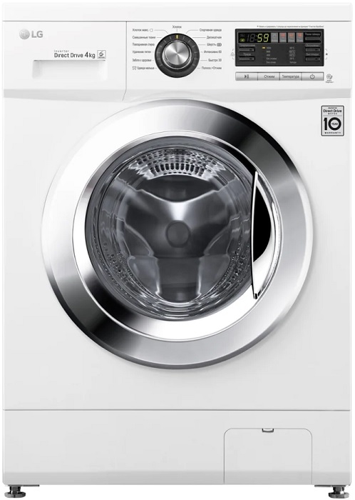 Модель стиральной машины LG F1096SD3 оснащена белой стальной крышкой, которая не только защищает от протекания воды, но и позволяет вписаться в шкаф кухонного гарнитура. Этот агрегат обладает небольшими размерами, а его вес составляет 56 кг. Способ загрузки белья - фронтальный.