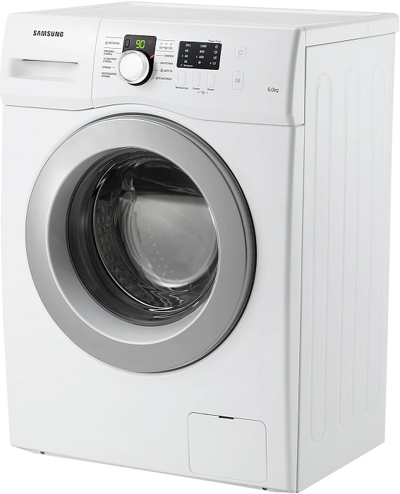 Стиральная машина Samsung Aegis Diamond Drum (WF60F1R1F2WDLP); 1020 Вт; 6 кг/39 л; 6 программ; кнопки,поворотный механизм,дисплей; 60x85x45; белый/сер