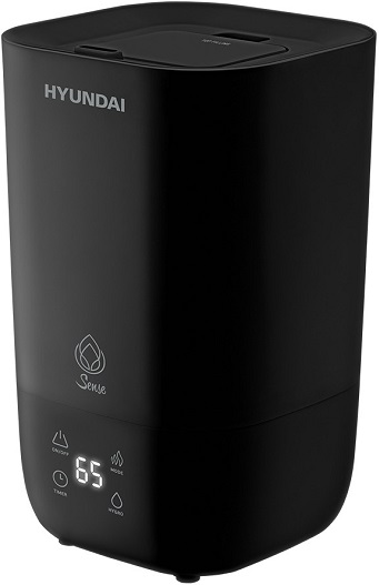 В небольшом ультразвуковом увлажнителе воздуха HYUNDAI H-HU16E-3.0-UI191 предусмотрен встроенный гигростат, который служит для контроля влажности. Производительность изделия равна 300 мл/час. Имеется таймер с отсрочкой до 12 ч. Мощность устройства вполне достаточная и составляет 23 Вт.