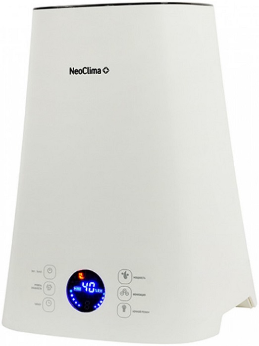 Увлажнитель воздуха NeoClima NHL-500VS позволит вам создать оптимальный климат в помещении, увлажнив слишком пересушенный воздух, неблагоприятно влияющий на кожу и волосы человека. Устройство заключено в белоснежный корпус, обладающий футуристичным внешним видом. Дизайн данной модели дополнен стильными черными вставками. Благодаря потребляемой мощности 25 Вт представленный увлажнитель способен обслужить помещение, площадь которого не превышает 40 кв.м. Полного резервуара для воды устройства хватит на 20 часов его непрерывной работы. В конструкции NeoClima NHL-500VS предусмотрен гигростат, который отключает прибор при достижении в помещении заданных параметров влажности воздуха. Электронная панель управления позволит настроить наиболее комфортные для вас параметры работы увлажнителя. Модель относится к ультразвуковому типу, преобразующему воду в холодный пар при помощи высокочастотных колебаний специальной мембраны. За один час своей бесперебойной работы устройство расходует 250 мл. Интенсивность испарений можно отрегулировать.