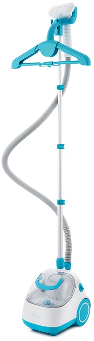 Отпариватель напольный KitFort KT-957; 1500 Вт; 25 г/мин; 1.9 л; 2 насадки + щетка; белый/бирюзовый