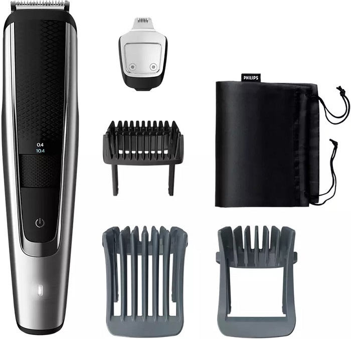 Триммер для бороды и усов Philips BT5522/15; 0,4-21 мм; 120 мин; 4 насадки; сумка-чехол; серый/черный