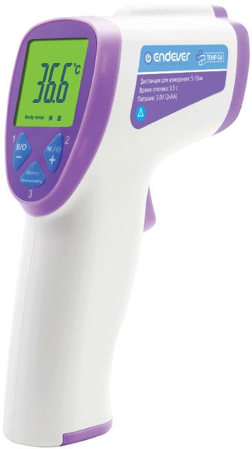 Медицинский термометр Endever Temp-04 представляет собой бесконтактное устройство, при помощи которого вам не составит труда, к примеру, измерить температуру ребенка. Кроме того, при помощи этого прибора вы сможете проконтролировать степень нагрева воды, питания и различных предметов. В основу модели Endever Temp-04 положена инфракрасная технология, которая с непревзойденной точностью определяет температуру. Еще одно достоинство этого домашнего помощника – наличие встроенной памяти, при помощи чего вы сможете отслеживать динамику сделанных ранее показателей. Все необходимые вам данные отображаются на большом ЖК-экране. Характерный звуковой сигнал оповестит вас о слишком высоком или низком температурном показателе.