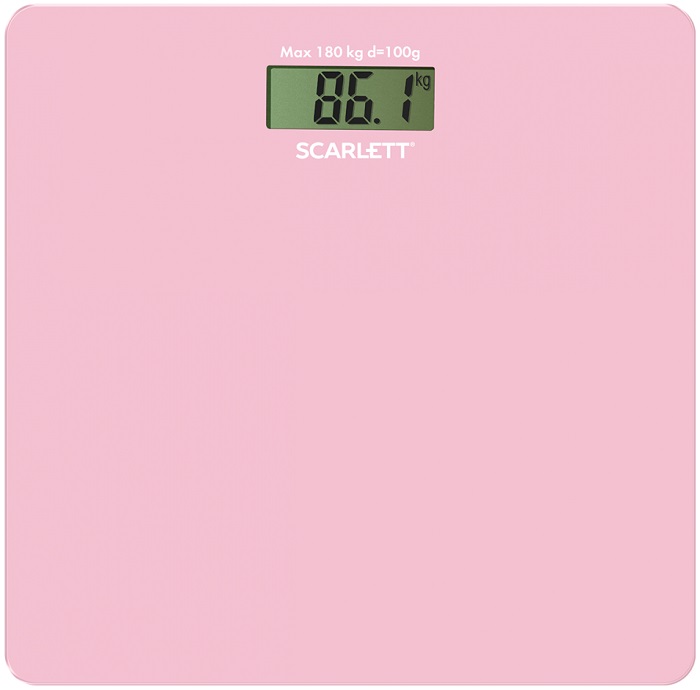 Весы Scarlett SC-BS33E041 в нежно-розовой расцветке изготовлены из пластика и металла. Они способны диагностировать массу до 180 кг с шагом деления 100 г. При превышении этого показателя сработает специальный индикатор. Модель включается автоматически и выключается тоже. За счет прорезиненных ножек она не скользит даже по кафельному полу. Полученные при измерениях показатели отображаются на крупном дисплее (30x74 мм). Работают весы Scarlett SC-BS33E041 от батарейки типа CR2032. Когда ее будет необходимо заменить, индикатор заряда подскажет.