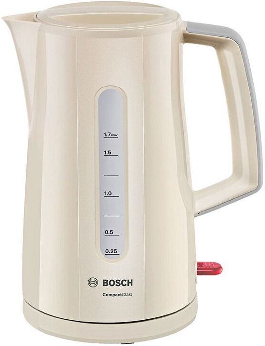 Модель BOSCH TWK 3A017 выполнена в классическом стиле и имеет элегантный бежевый цвет, поэтому впишется в любой кухонный интерьер. Съемная крышка позволит легко и без проблем почистить чайник изнутри. Во время работы электроприбора крышка блокируется.