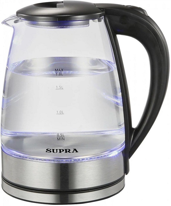 Электрочайник Supra KES-1860G со стеклянным корпусом позволяет наблюдать за процессом закипания воды и легко определять ее уровень в резервуаре. Объем модели составляет 1,8 л. Для нагрева используется дисковый элемент. Простое механическое управление делает устройство очень надежным и долговечным. При снятии с подставки чайник автоматически отключается, что защищает от ожогов. Прибор не работает без воды, что предупреждает возможный перегрев и поломку. Внутренняя подсветка делает использование устройства удобным в любое время суток. Модель выполнена в сочетании черного и серебристого цветов.