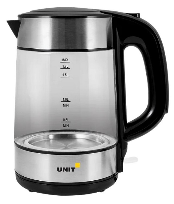 Электрочайник UNIT UEK-273; 2000 Вт; 1.7 л; стекло; подсветка; серебристый/черный