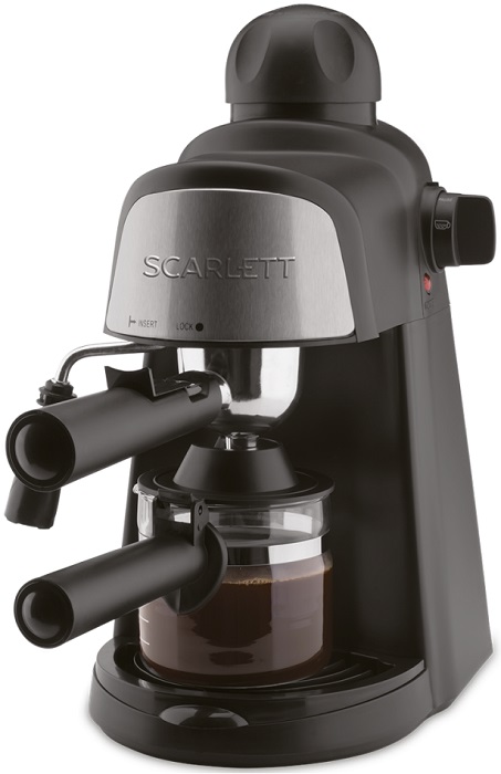 Кофеварка рожковая Scarlett SC-037; 800 Вт; 3.5 бар; 0.24 л; поворотный механизм; ручной капучинатор; черный/серебристый