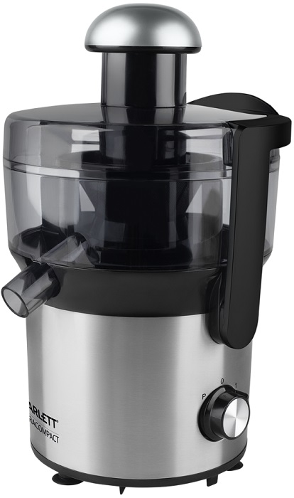 Прибор Scarlett SC-JE50S51 оснащен прочным металлическим корпусом с круглой горловиной на 5.5 см, а также удобной металлической сеткой. Комфортной эксплуатации способствует наличие системы \u00abкапля-стоп\u00bb, функцией прямой подачи напитка и эффективной защитой от случайного включения прибора. Конструкция дополнена нескользящими прорезиненными ножками.
