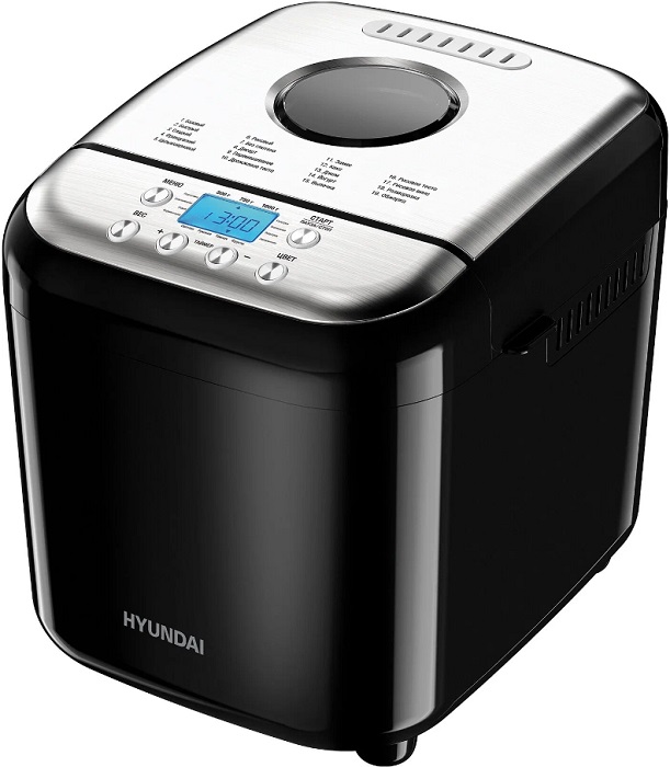 Хлебопечка Hyundai HYBM-3087 черный/ серебристый (600 Вт, макс. вес - 1000 г, количество программ - 19)
