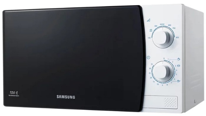 Микроволновая печь Samsung ME81KRW-1 с мощностью 800 Вт поможет быстро разогревать или готовить пищу, а также размораживать мясо, рыбу, другие продукты или полуфабрикаты. Биокерамическое покрытие внутри камеры препятствует размножению бактерий и появлению неприятного запаха, а также обладает высокой устойчивостью к износу.Система равномерного распределения волн обеспечивает СВЧ-излучение во всех направлениях, не концентрируясь только на одной части блюда. Используя семь уровней мощности на механической панели управления, можно наиболее точно задать режим работы микроволновой печи, регулируя интенсивность разогрева с помощью поворотных переключателей. Навесная дверца мягко закрывается, а для открытия нужно просто нажать кнопку.
