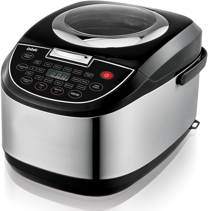 C мультиваркой BBK BMC052 сложная поварская работа превратится в настоящее удовольствие. С ее помощью вы приготовите множество разнообразных блюд: например, сытный плов, итальянскую пасту, таящую во рту выпечку, традиционный холодец и даже полезный домашний йогурт. Чаша с антипригарным покрытием и внутренняя крышка легко очищаются от кусочков пищи и жира с помощью губки. Пятилитровая емкость идеально подойдет для того, чтобы накормить большую семью. Старт можно отложить до 24 часов. Поместите заранее продукты в мультиварку, а к нужному времени будет ждать вкуснейшее лакомство. Кулинарный процесс требует более индивидуального подхода? Здесь вам пригодится функция \u00abСвой рецепт\u00bb: выбирайте такое время и температуру нагрева, которые нужны именно сейчас. Кроме самого кухонного помощника, в наборе вы найдете контейнер для паровой обработки пищи, мерный стакан и ложки для супа и риса.