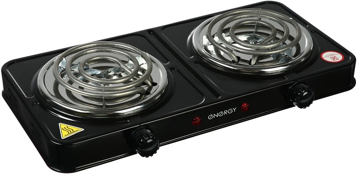 Настольная плита Energy EN-904В; 2000 Вт; эмал.сталь; 2 спиральные конфорки; 5 режимов; поворотный механизм; 47x26.4x8.5; черный