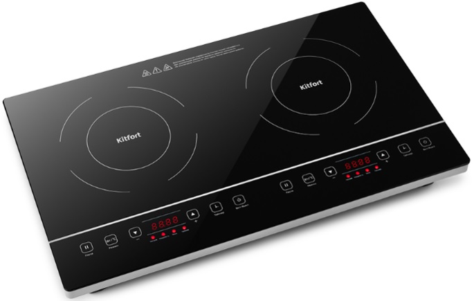 Настольная плита KitFort KT-127; 3400 Вт; cтеклокерамика; 2 индукционные конфорки; 20+14 режимов; сенсор,дисплей,таймер; 60.1х36.1х7.5; черный