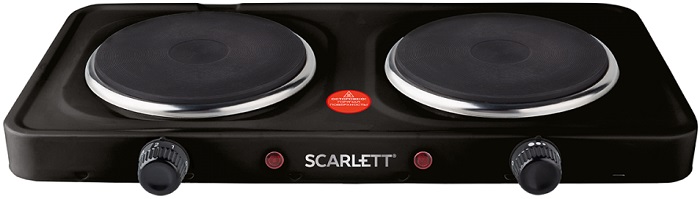 Настольная плита Scarlett SC-HP700S12; 2000 Вт; эмал.сталь; 2 чугунные конфорки; 5 режимов; поворотный механизм; 35.5x25.5x4.6; черный
