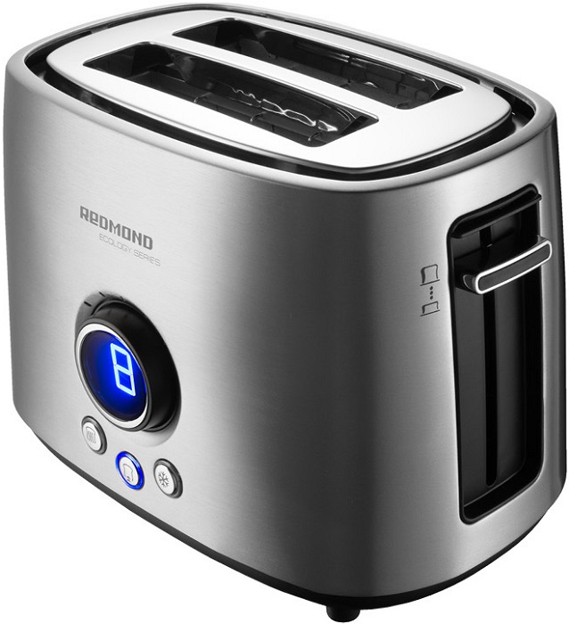 Тостер REDMOND RT-M403 — один из представителей продукции модельного ряда ECOLOGY SERIES. Для вашего удобства прибор оснащен ЖК-дисплеем, который показывает выбранную степень поджаривания тостов. Светодиодная индикация наглядно отображает обратный отсчет времени обжаривания. Для приготовления тостов из замороженного хлеба предусмотрена функция разморозки (тостер размораживает хлебные ломтики, а затем автоматически переключается в режим обжаривания). При помощи функции разогрева можно подогреть остывшие тосты или — используя специальную подставку — булочки, круассаны и т. п.