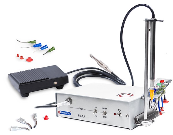 ВМ-0.7 - тихий универсальный вакуумный пинцет со встроенным вакуумным насосом, который предназначен не только для интенсивных манипуляций с мелкими компонентами (вплоть до типоразмера 0402), но и с габаритными чипами, такими как BGA и другими объектами весом до 200 г. В отличии от ВМ-045 электровакуумный пинцет ВМ-07 оснащен быстродействующим индустриальным клапаном для многолетней эксплуатации. Вакуумный пинцет ВМ-07 имеет 2 режима генерации вакуума - непрерывный и периодический, а также режим снижения уровня вакуума для еще более тихой и комфортной работы. В комплекте поставляются присоски трех типоразмеров из термостойкого силикона, а также металлические насадки для работы с мелкими чип-компонентами. Управление подачей вакуума осуществляется при помощи электро-педали.¶
