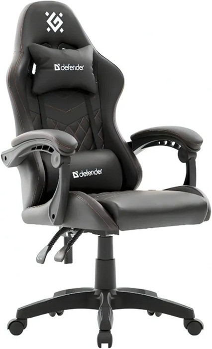 Игровое компьютерное кресло Defender Alarin (64829) с обивкой из экокожи оснащено съёмными подушками для поддержки поясницы и шеи. Спинка регулируется по наклону с фиксацией, предусмотрен механизм качания, мягкие неподвижные подлокотники и плавная регулировка высоты сиденья газлифтом.