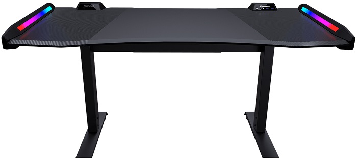 Просторная игровая поверхность шириной до 150 см с текстурой из углеродного волокна обеспечивает достаточно места для игровых мониторов, игровых клавиатур и других игровых устройств.