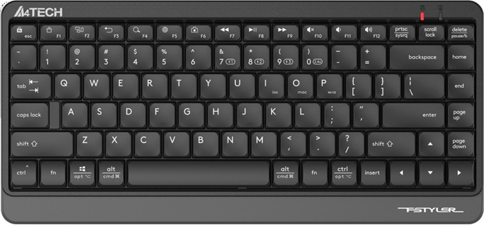Клавиатура A4Tech Fstyler FBK11 Grey (FBK11 GREY); мембранная; 12 FN клавиш; Bluetooth/беспроводная/USB; серый/черный