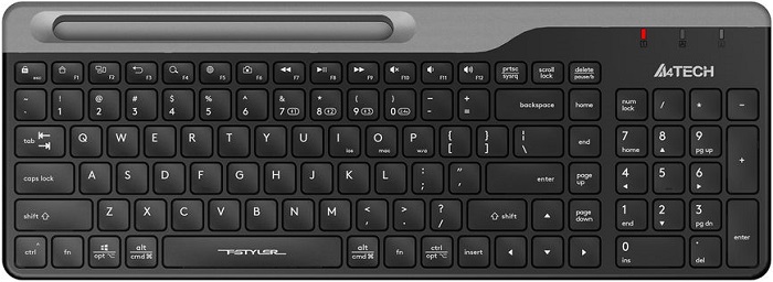 Клавиатура A4Tech Fstyler FBK25 станет надежной помощницей для повседневной работы и учебы. Она подключается беспроводным способом посредством технологии Bluetooth или по радиоканалу на частоте 2.4 ГГц. Данная клавиатура оснащена 103 клавишами, включая цифровой блок. Мембранный механизм клавиш отличается четким откликом и низким уровнем шума. Особенностью клавиатуры является встроенная подставка для удобного размещения мобильного телефона. В комплекте с клавиатурой A4Tech Fstyler FBK25 поставляются сменные цветные панели, элемент питания АА и приемник USB.
