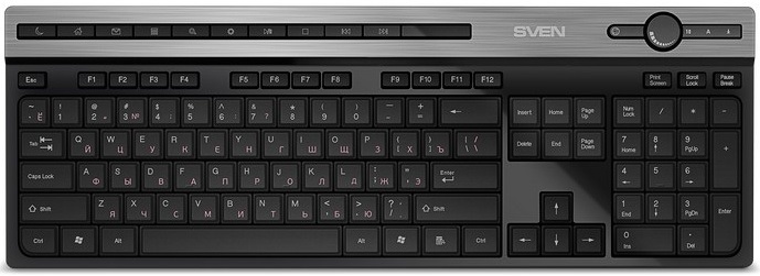 Беспроводная клавиатура SVEN KB-E5500W [SV-021931] оборудована 115 клавишами, среди которых 15 дополнительных, предназначенных для быстрого доступа к офисным приложениям и управления мультимедийными функциями. Срок службы устройства составляет до 20 миллионов нажатий. Ввод числовых данных осуществляется через отдельный цифровой блок.