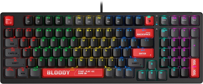 Клавиатура A4Tech Bloody S98 Red; механическая; BLMS Red Plus; 10 FN клавиш; RGB-подсветка; USB; черный/красный