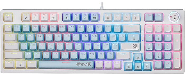 Клавиатура Defender Hawk GK-418 RU (45422); механическая; Outemu Brown; 12 FN клавиш; RGB-подсветка; USB; белый/голубой