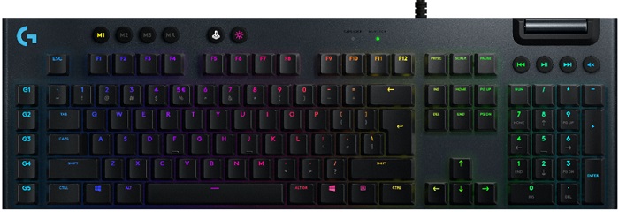 Клавиатура Logitech G815 обладает полноразмерной раскладкой с цифровым блоком, макро-клавишами и панелью мультимедиа. Конструкция из комбинации пластика и металла гарантирует высокий уровень надежности в эксплуатации. Подключение клавиатуры к компьютеру выполняется по проводному интерфейсу USB