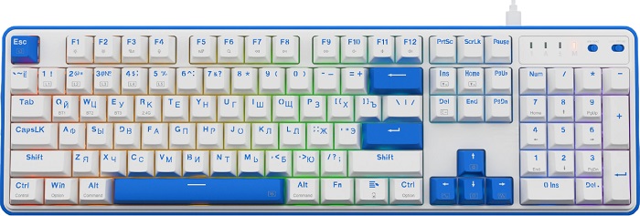 Клавиатура Redragon Faye Pro (72257); механическая; Redragon Red; 12 FN клавиш; RGB-подсветка; беспроводная; белый/синий