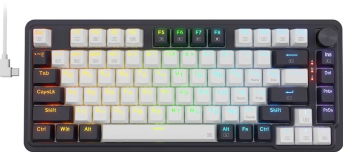 Форм-фактор TKL (80%) экономит пространство стола. Совместима с ПК и ноутбуками. Сочетает тактильный комфорт, низкий уровень шума и персонализацию для гейминга и работы.