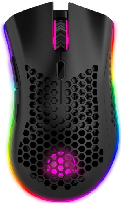 Гибридное подключение Технология гибридного подключения позволяет использовать мышь как в проводном, так и в беспроводном режиме полная свобода движения В беспроводном режиме встроенный литий-полимерный аккумулятор емкостью 600 MAH увеличение времени работы В 3-4 раза без перезарядки при выключенной подсветке легкий переход В проводной режим - просто подключите кабель ультрамягкий кабель \u00abпаракорд\u00bb для аюсолютного комфорта PIXART 3325 с микроконтроллером. Высококачественный игровой сенсор от компании PIXART обеспечивает высокую точность позиционирования курсора, а также мгновенную реакцию на движение руки пользователя. От 500 DPI до 5 000 DPI – разрешение сенсора. Предустановленные уровни – 500/ 1500 / 2000 / 3000/ 4000/ 5000 DPI. При использовании фирменного программного обеспечения всегда можно произвести тонкую настройку уровней разрешения сенсора от 500 DPI до 10 000 DPI. 100 IPS / 20 G. Высокие показатели скорости движения и ускорения, при которых сенсор идеально считывает поверхность, гарантируют, что \u00abсорвать\u00bb сенсор при использовании игровой поверхности будет практически невозможно. 125/250/500/1000 Гц - уровни настройки частоты опроса шины. Выбор производится с помощью программного обеспечения. LED-подсветка RGB CHROMA LIGHT по контуру работает в 11 различных режимах. Переключение режимов осуществляется кнопкой на нижней части мыши Подсветку можно также полностью отключить переключателем на дне. Индикация уровня DPI. При переключении уровня DPI изменяется цвет подсветки колеса прокрутки и логотипа. PANTEON PS77 W оснащена профессиональными переключателями HUANUO с ресурсом более 10 млн. нажатий. Фирменное программное обеспечение позволяет тонко настраивать мышь, а также записывать макросы для всех кнопок мыши.