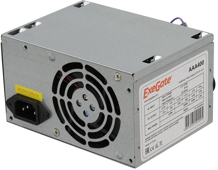 Блок питания 400 Вт ExeGate AAA400 (ES259590RUS); ATX 12V v2.3; 24+4 pin; 1x4 pin; 2xSATA; 1xMolex; 80 мм; OEM
