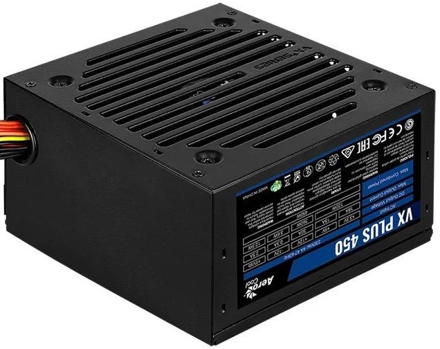 Блок питания 450 Вт AeroCool VX-450 Plus (4713105962741); ATX 12V v2.3/EPS12V; 20+4 pin; 2xSATA; 2xMolex; 1x4+4 pin; 1x6+2 pin; 120 мм; A.PFC; RET