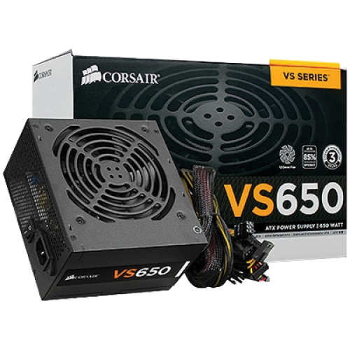 Блок питания Corsair VS 650W обладает форм-фактором ATX версии 2.3, поэтому соответствует требованиям современной техники. Надежность устройства гарантирует поддержка стандарта EPS12V, а активный тип PFC-коррекции обеспечивает отношение активной мощности к той, которая получается в итоге, – в 0.99. Вентилятор с размерами 120х120 мм, встроенный в нижнюю часть блока, обеспечивает охлаждение устройства на всех уровнях. Он пропускает большие потоки воздуха при минимальной затрате энергии и устанавливает интенсивность процесса, руководствуясь фактической температурой.