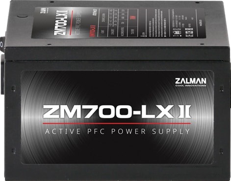 Блок питания 700 Вт Zalman ZM700-LXII; ATX 12V v2.3; 20+4 pin; 1x4+4 pin; 4x6+2 pin; 6xSATA; 5xMolex; 120 мм; A.PFC; RET