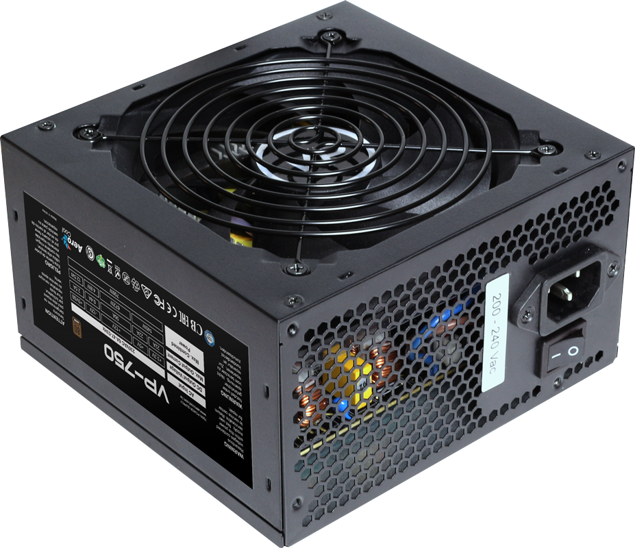 Блок питания 750 Вт AeroCool VP-750 (4713105957068); ATX; 20+4 pin; 4x6-pin; 4x8 pin; 6xSATA; 4xMolex; 120 мм; A.PFC; RET