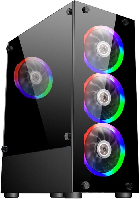 Корпус 1STPLAYER FIRE DANCING V2-A (V2-A-4R1); ATX; Midi-Tower; боковое и фронтальное закалённое стекло; 4х120 мм, RGB подсветка; без БП; черный