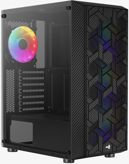 Стальной корпус ATX AEROCOOL Hive-G-BK-v2 выкрашен в черный цвет, боковая панель изготовлена из закаленного стекла. Предусмотрен 1 вход USB 2.0 и 2 входа USB 3.0, а также 2 выхода для наушников и микрофона. Максимально возможная длина видеокарты здесь 317 мм. Размещение HDD предусмотрено как вертикальное, так и поперечное, внутренняя корзина съемная. Предусмотрены три отсека на 2,5 дюйма и два отсека 3,5 дюйма.