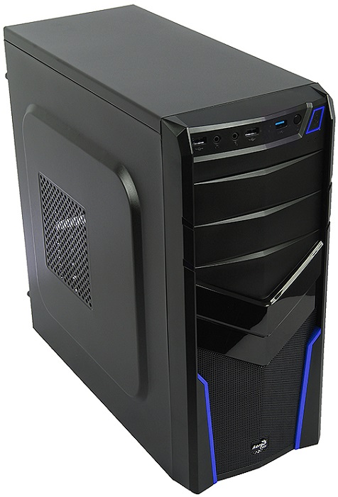Корпус AeroCool V2X Blue (4713105952681); ATX; Midi-Tower; 1х92 мм; без БП; черный/синий