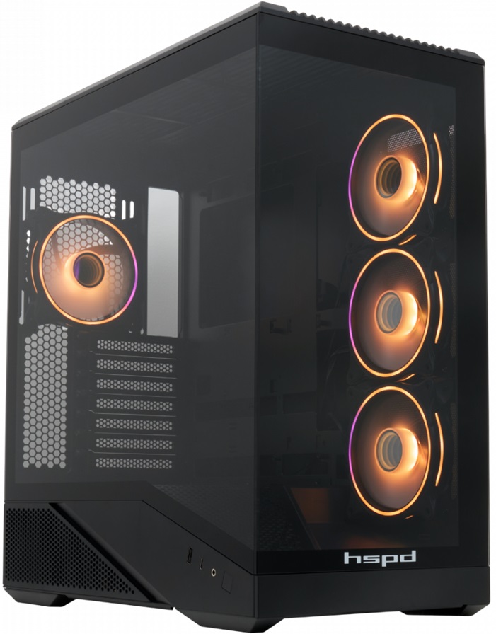 Корпус HSPD F711-TGBK-ARGB; ATX; Full-Tower; боковое и фронтальное закалённое стекло; 4х120 мм, ARGB подсветка; без БП; черный