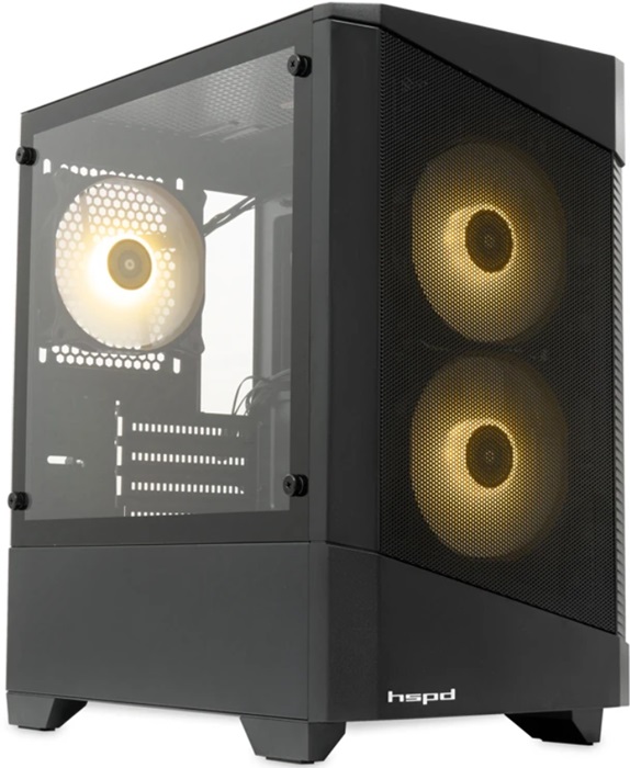 Корпус HSPD M330-TGBK-ARGB; mATX; Mini-Tower; боковое закалённое стекло; 3х120 мм, ARGB подсветка; без БП; черный