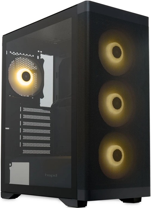 Корпус HSPD M520-TGBK-ARGB Black представляет собой стильное и практичное решение формата Midi-Tower, которое отлично впишется в конфигурацию геймерского или офисного персонального компьютера. Эта модель выделяется продуманным дизайном и удобством эксплуатации, предоставляя достаточное пространство для размещения внутренних комплектующих и качественной вентиляции.Комплект поставки корпуса не включает блок питания, давая возможность покупателю подобрать наиболее подходящую модель именно под свою систему. Блок питания размещается внизу конструкции, способствуя улучшению воздушного потока внутри корпуса и лучшему отводу тепла от элементов оборудования.Оригинальность внешнему виду добавляет стеклянная панель из закаленного стекла, подчеркивающая красоту внутренней начинки и привлекающая внимание окружающих. Для пользователей предусмотрена удобная система крепления двух накопителей типоразмера 2.5” и одного стандартного винчестера размером 3.5”, позволяющая организовать комфортное размещение большого объема данных.