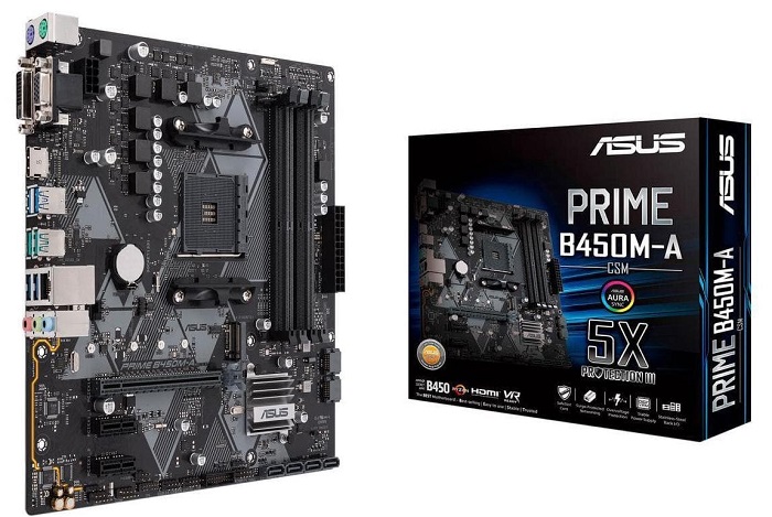 Системная плата ASUS PRIME B450M-A поддерживает сокет AM4. Это значит, что она совместима с процессорами от AMD. Обязательно проверьте возможность установки конкретного чипа перед покупкой оснащения.