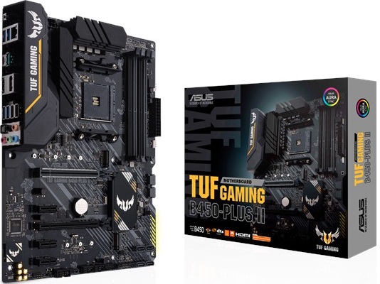 Материнская плата ASUS TUF GAMING B450-PLUS II работает на базе популярного в среде поклонников марки AMD чипсета AMD B450. Модель, обладающая совместимостью с процессорами AMD (сокет AM4), подходит для сборки высокопроизводительного игрового системного блока. Поддержка технологии CrossFire X дает возможность задействовать 2 видеоадаптера одновременно. Максимальный объем поддерживаемой памяти, роль которой играют модули DDR4, равен 128 ГБ. Плата допускает установку двух накопителей M.2. Важной особенностью в этой связи является поддержка стандарта NVMe.